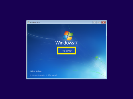 USB 부팅디스크로 부팅이 성공하면 가장 먼저 보게 되는 건 윈도우7 설치 화면입니다.