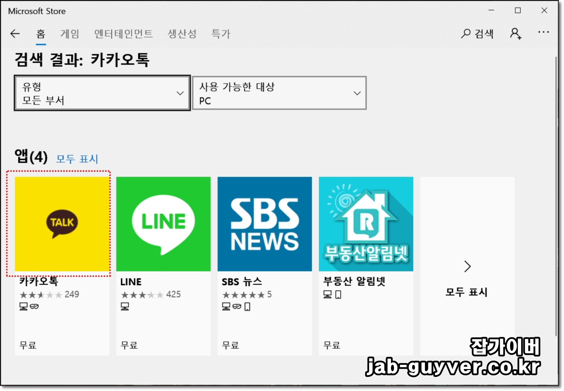 마이크로소프트 스토어 카카오톡 2개 동시 설치
