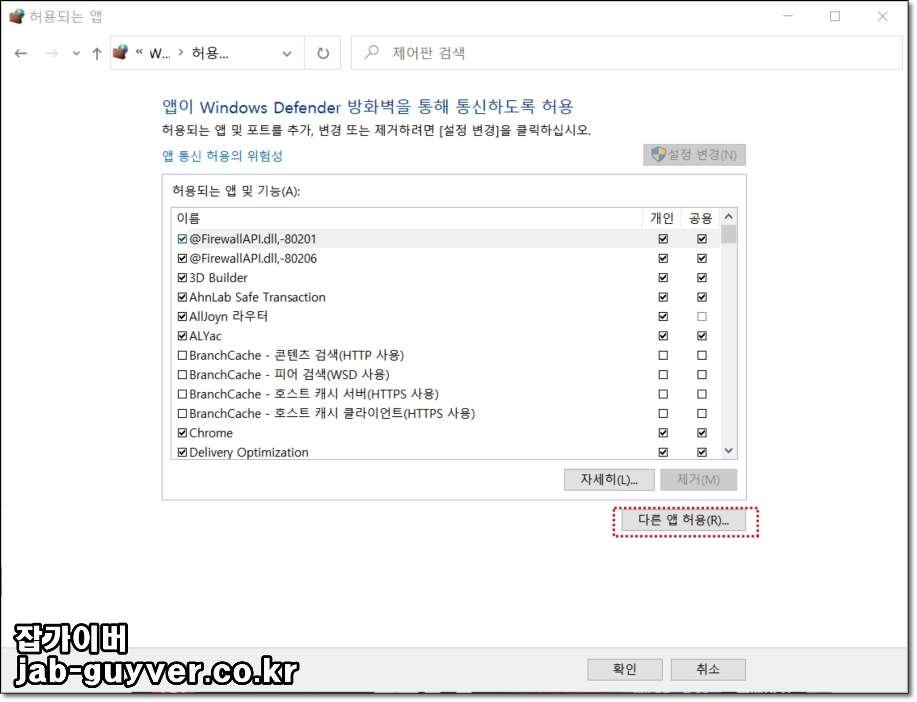 특정 앱만 허용 – 카카오톡 실행 파일 예외 등록
