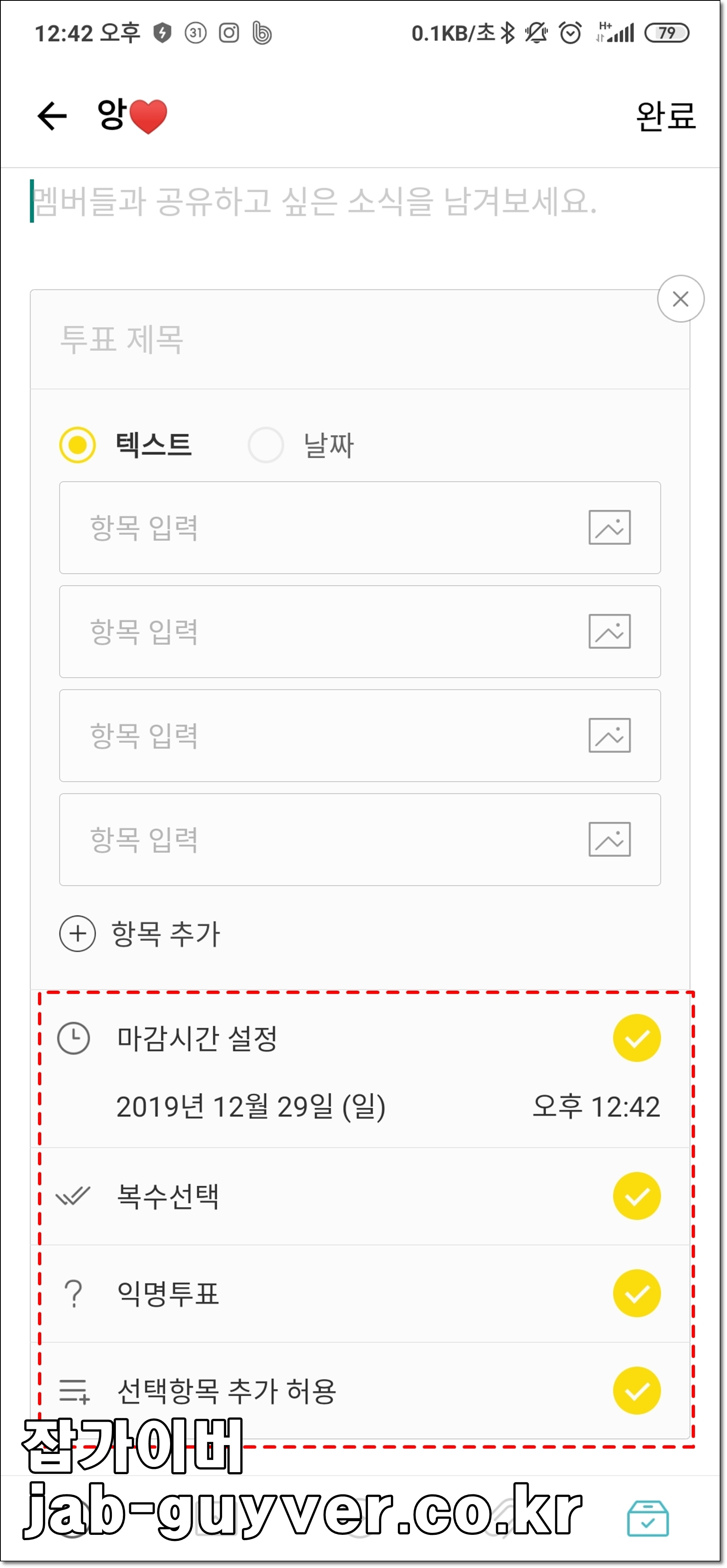 그리고 투표 선택지를 텍스트나 날짜중에서 선택합니다.