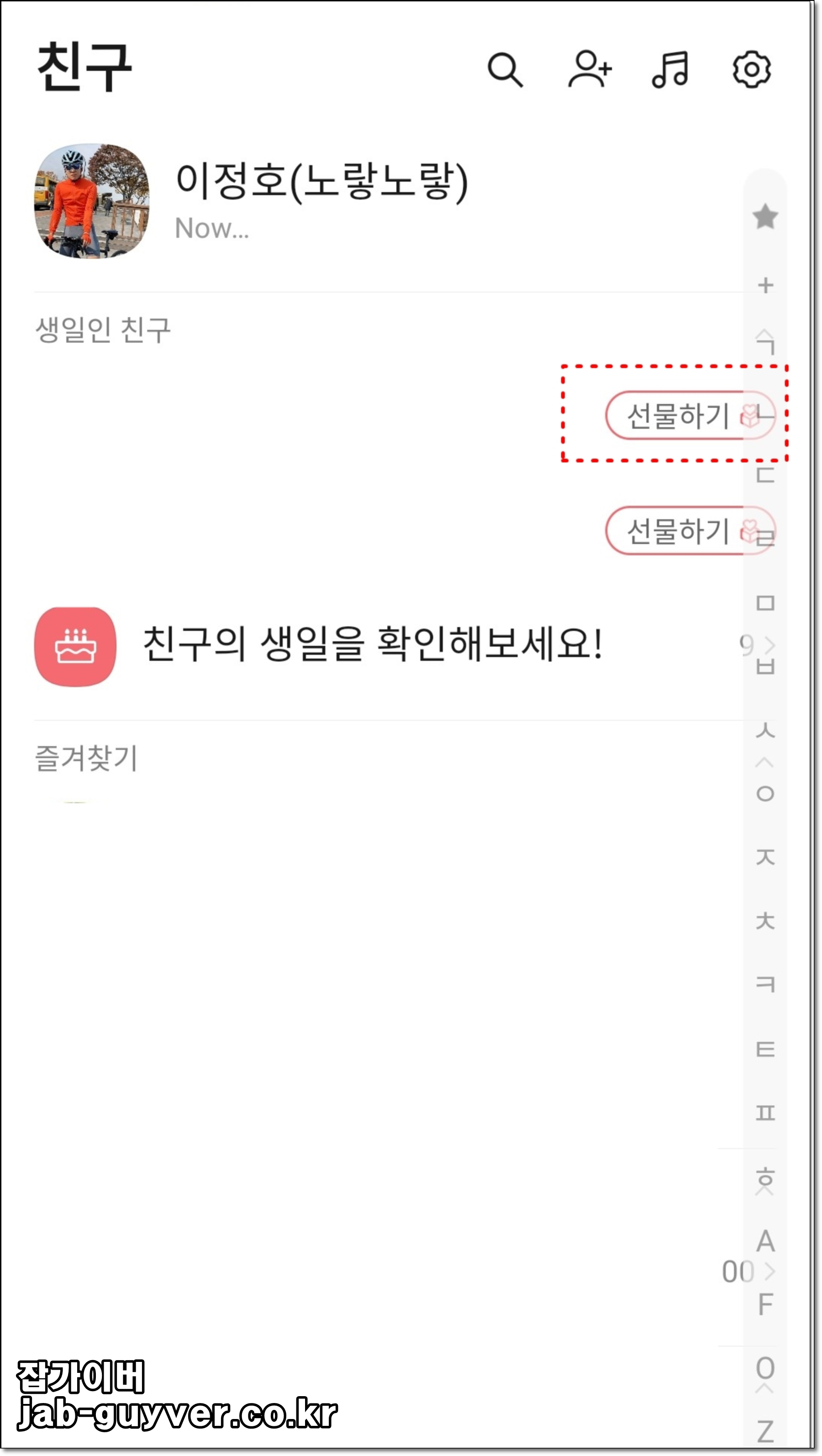 저는 생일인 친구목록에 있는 친구에게 생일선물을 보내보겠습니다.
