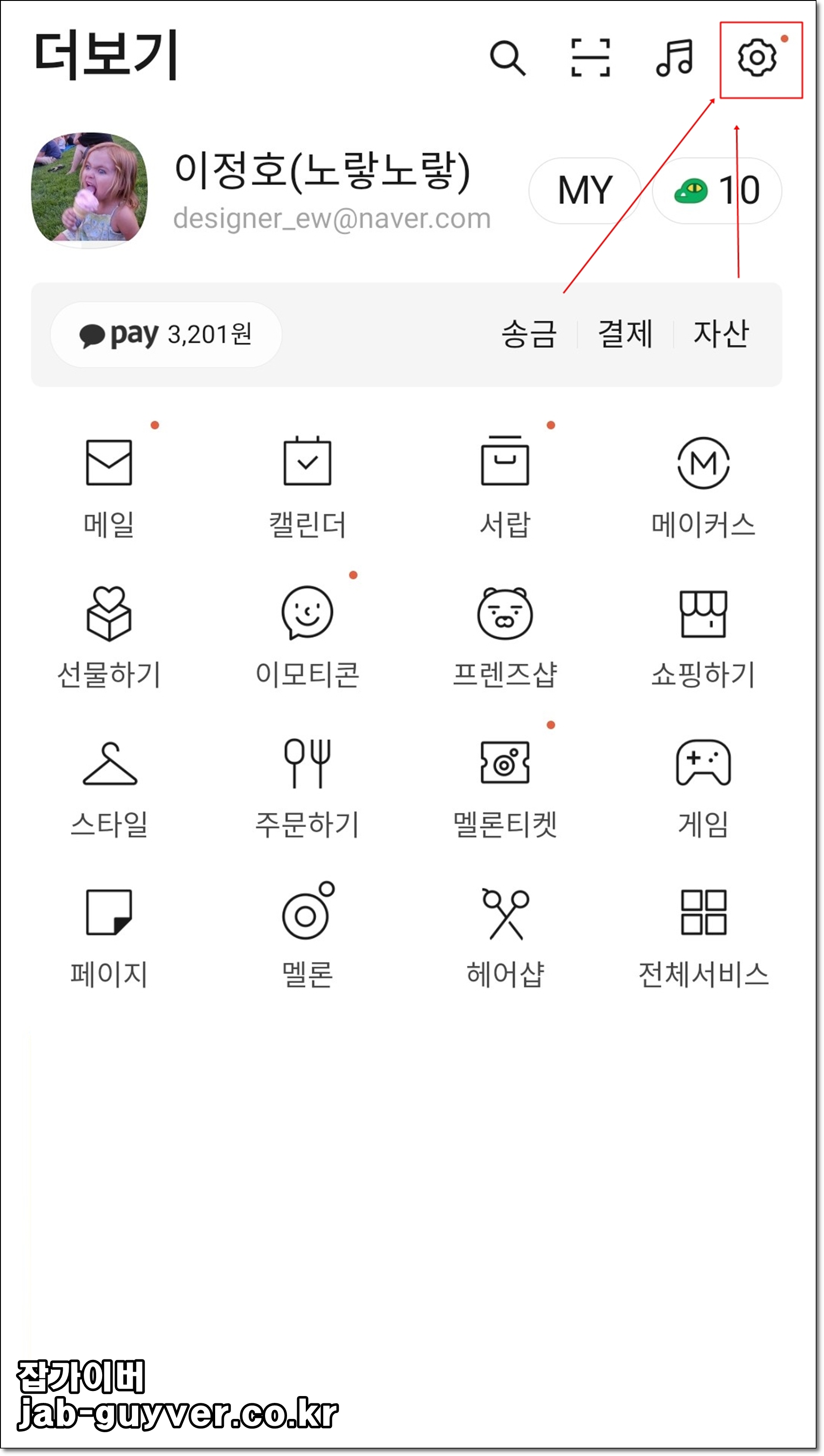 - 우측상단 기어마크를 눌러 설정으로 들어갑니다.