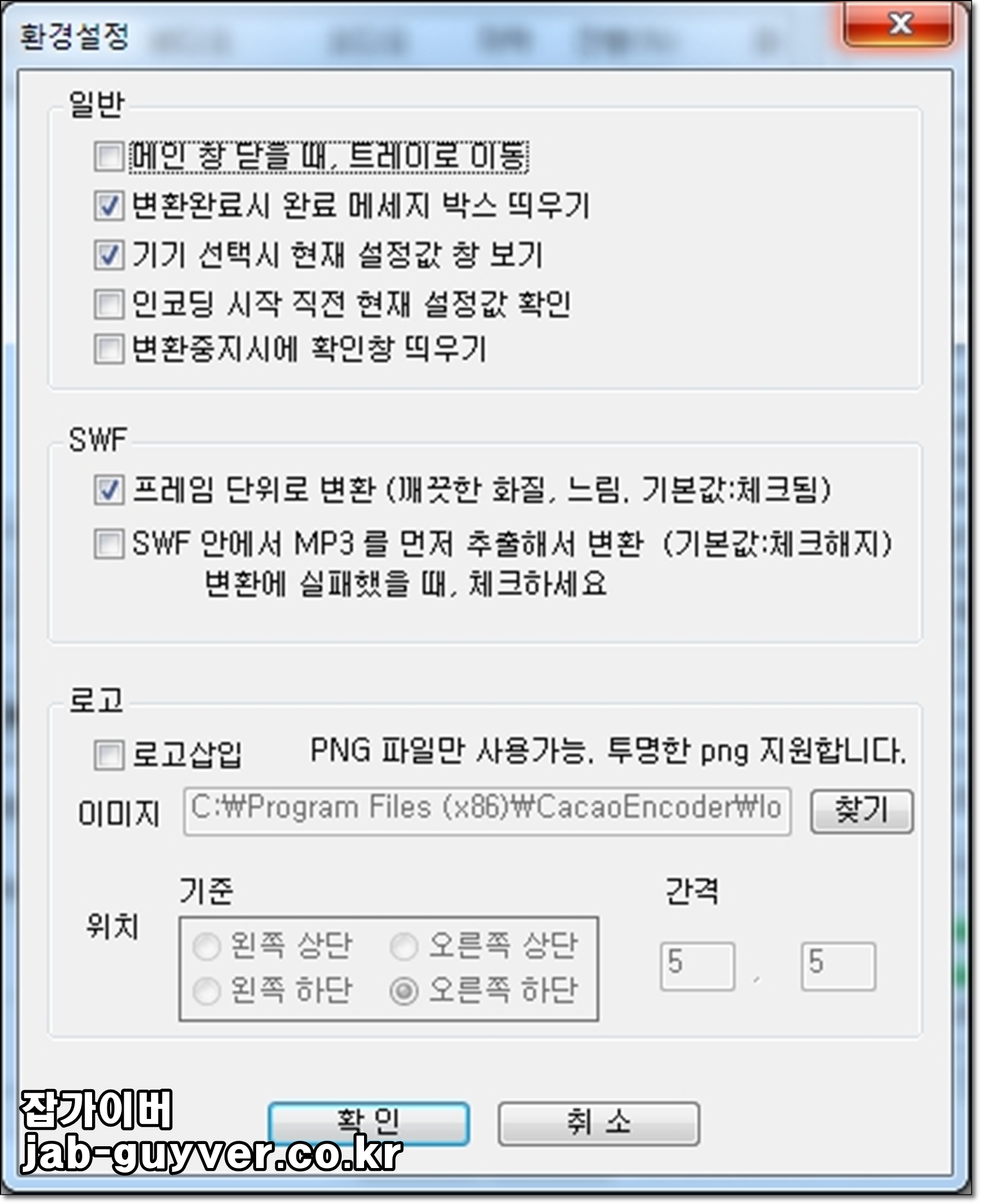 환경설정을 통해 로고를 삽입해 워터마크가 있는 동영상을 만들 수 있습니다.