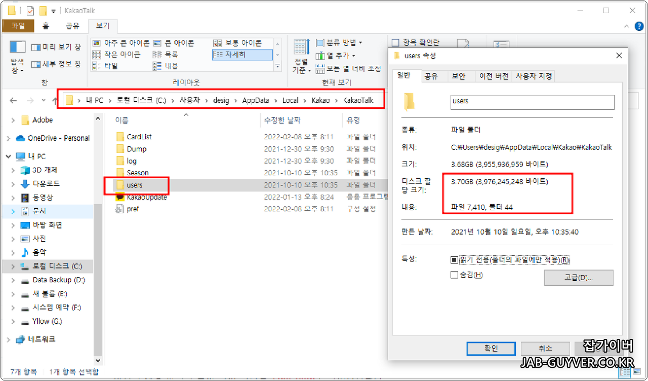 윈도우 카카오톡 대화내용 저장위치