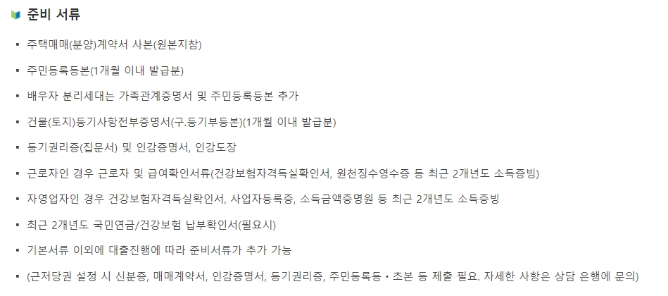 • 주민등록상 전입일로부터 1년 이상 및 기존 대출실행일로부터 1년 이상 경과