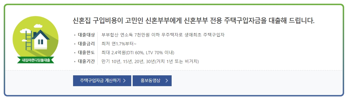 신혼부부 전세 및 주택 담보 대출 상품