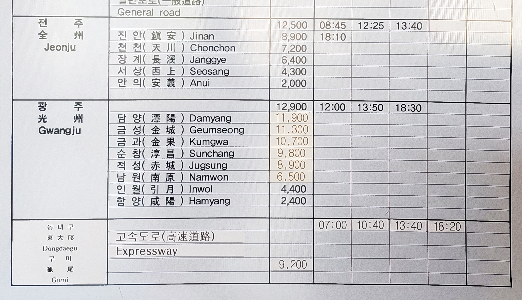 거창시회버스터미널에 방문할 분들에게 필요한 시간표와 요금표 공유합니다.