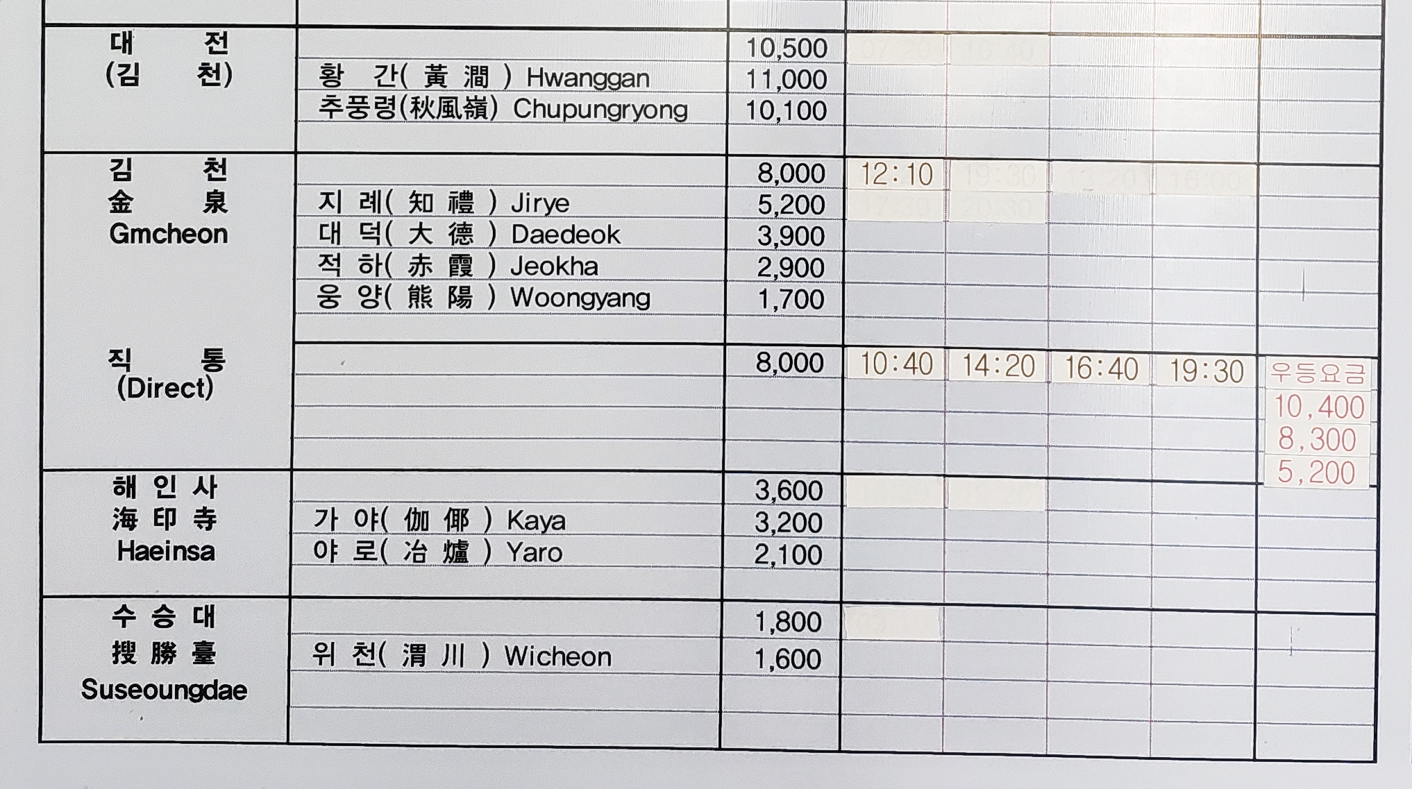 | 인천공항 | 39,600 | 김천우등 | 10,000 | 대구 | 5,400 | ||||||