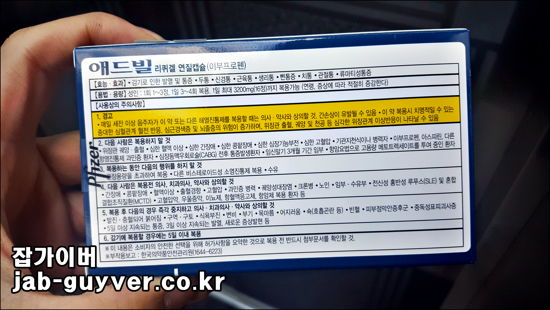 - 1회 200~400mg (애드빌 일반 캡슐 1~2캡슐)