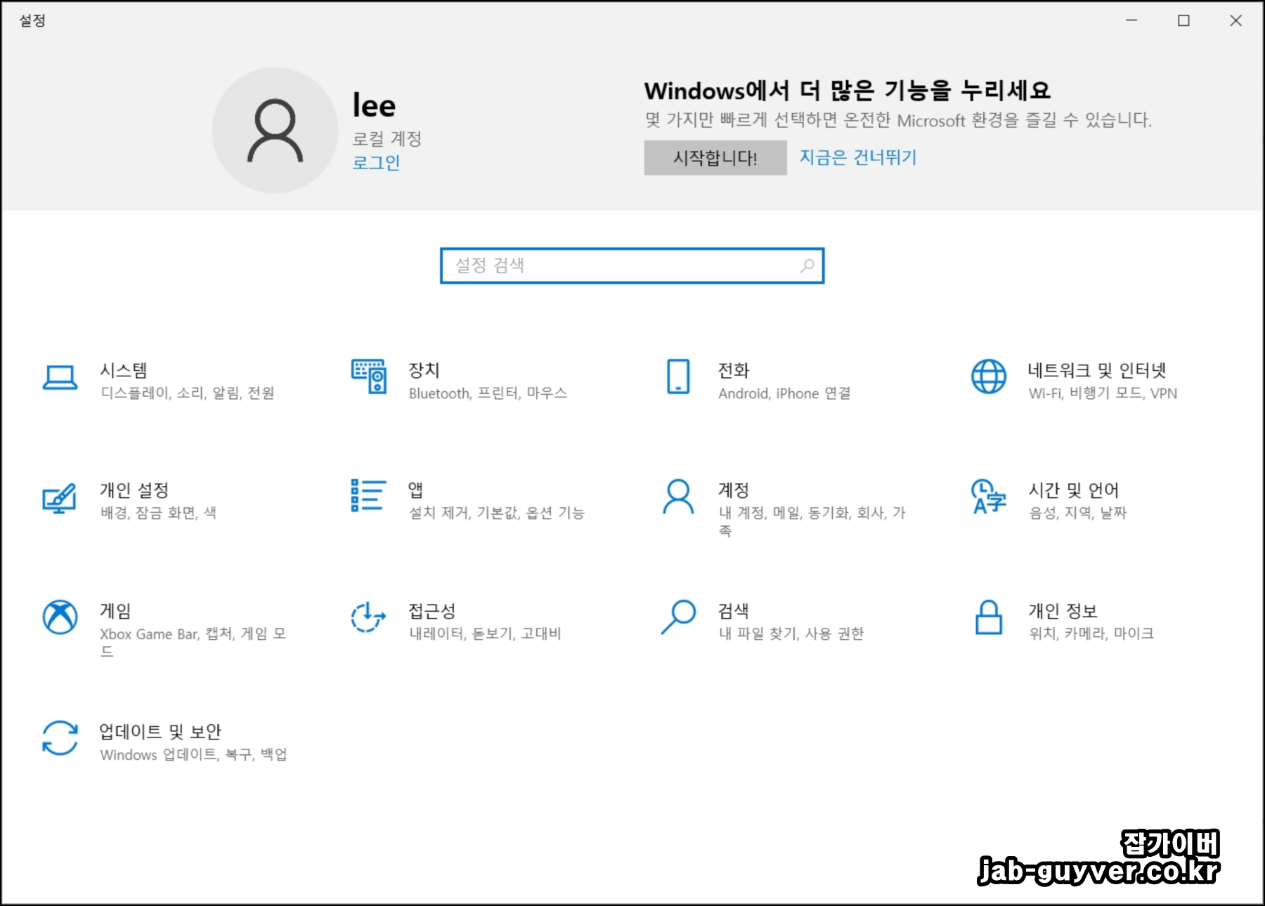 그럼 제어판과 동일한 기능인 Windows Setting 창이 실행됩니다.