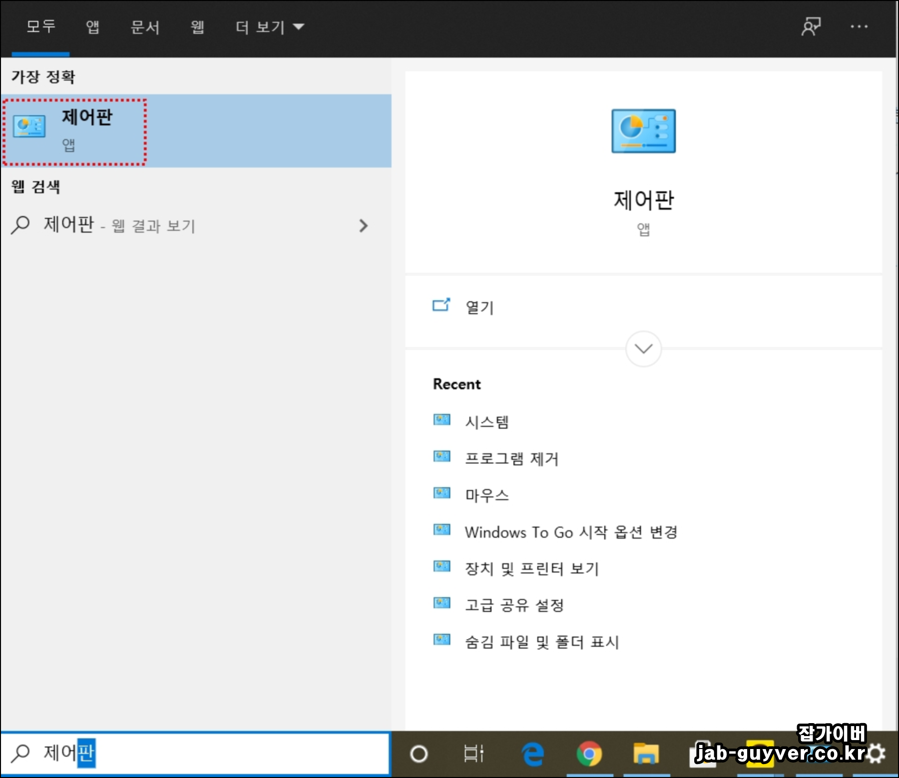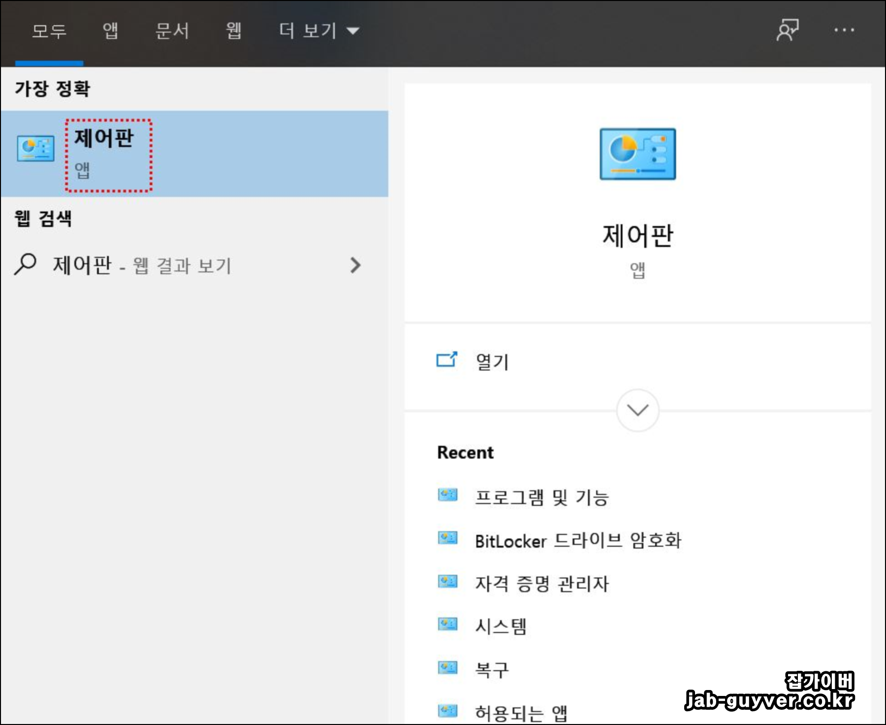 영문판 윈도우의 경우 "Control Panel"이라고 입력합니다.