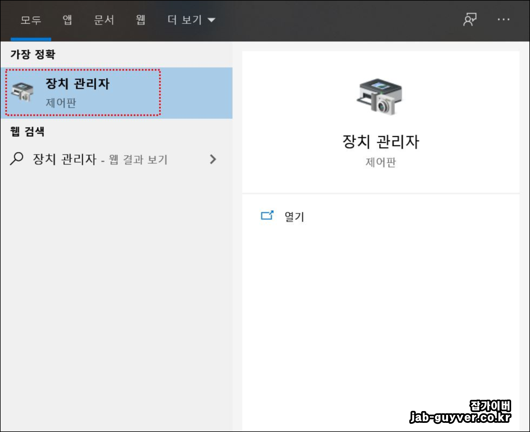 윈도우 검색창에 "장치 관리자"입력해서 실행합니다