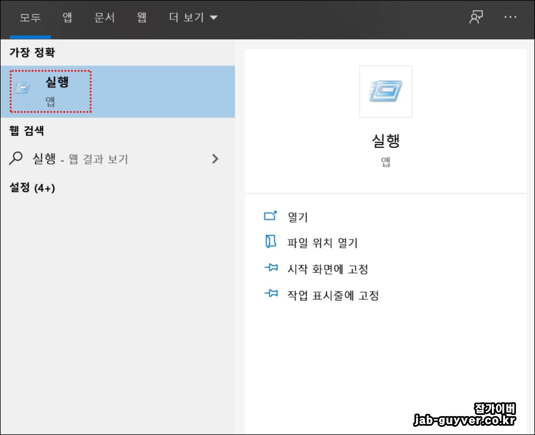 마지막으로 윈도우 검색 "실행"을 입력합니다.