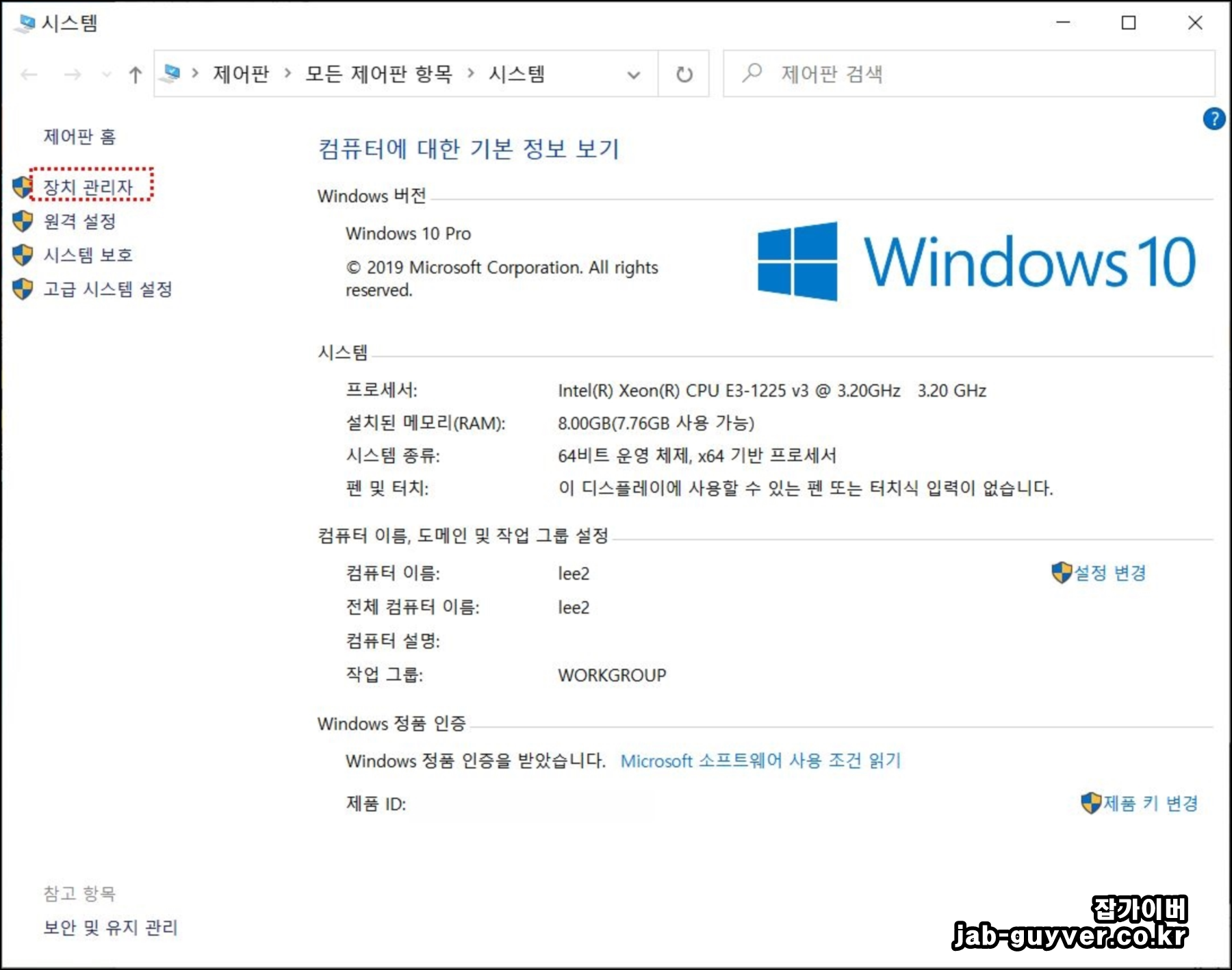 - 그리고 하단에 윈도우 정품인증과 제품 ID 등을 확인할 수 있습니다.