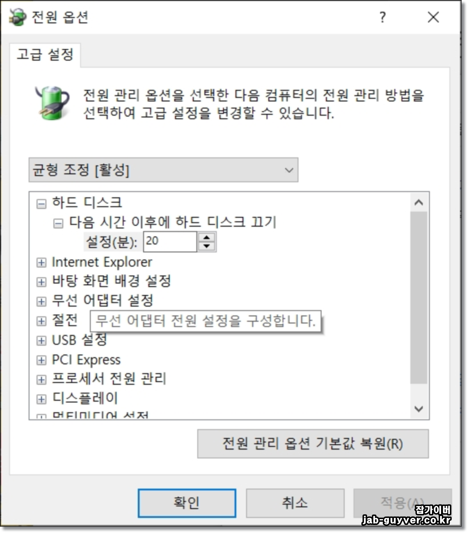 전원옵션을 통해 컴퓨터 부품에 들어가는 하나하나의 절전모드 시간을 설정하거나 비활성화할 수 있습니다.