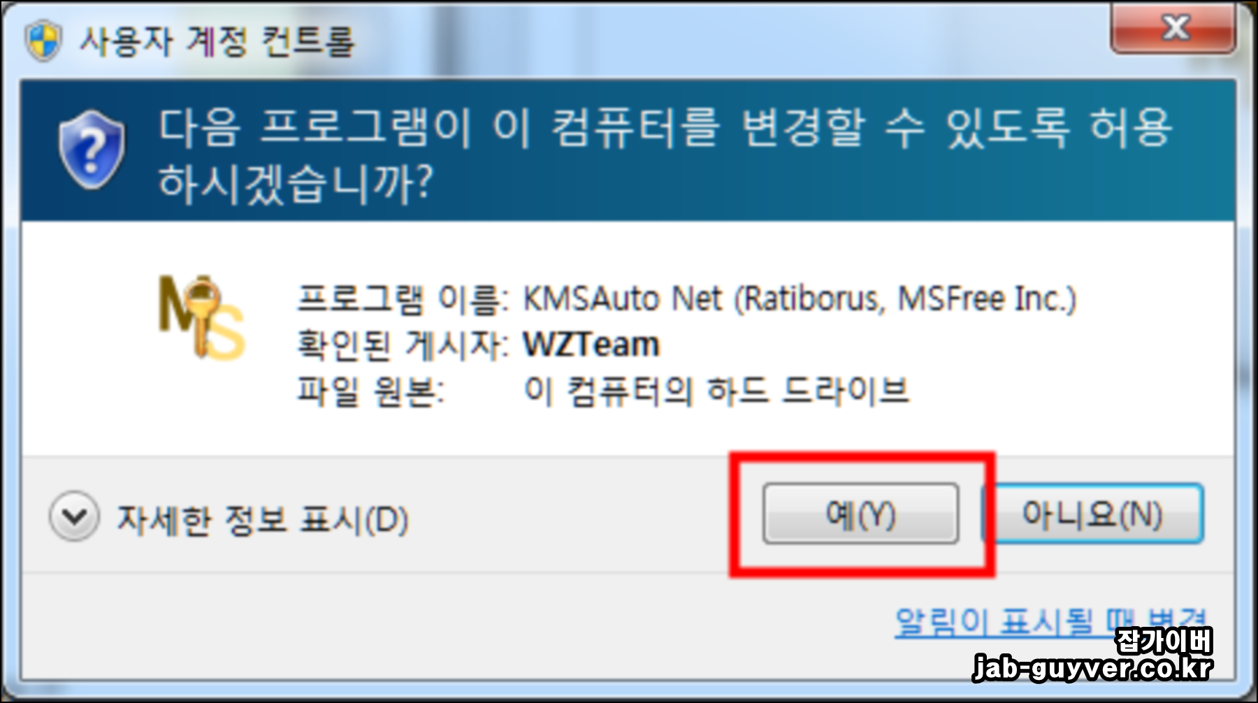 사용자 계정컨트롤이 실행된다면 "예"를 선택