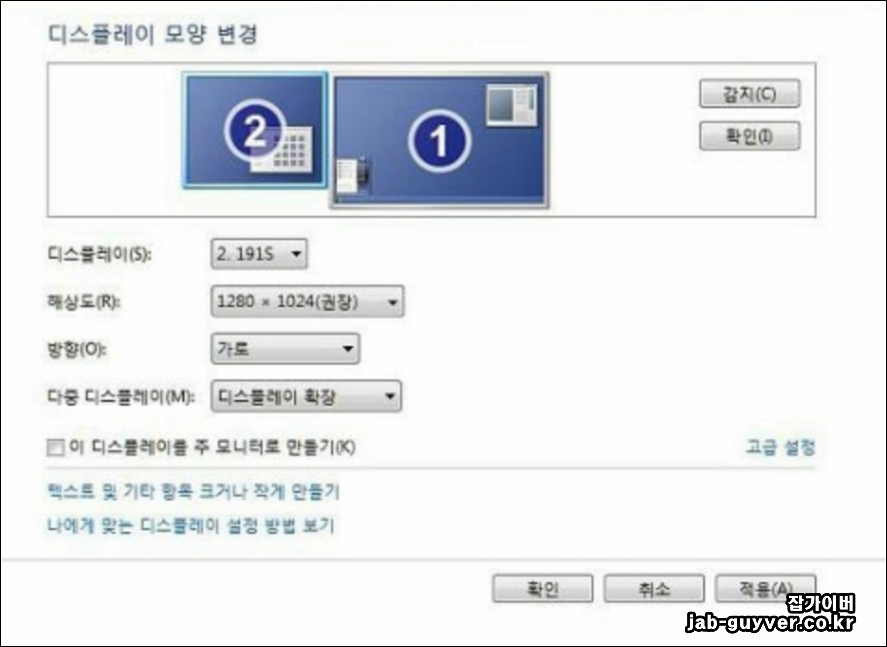 2. 듀얼모니터 연결 후 해상도가 달라요. 해결 방법은?