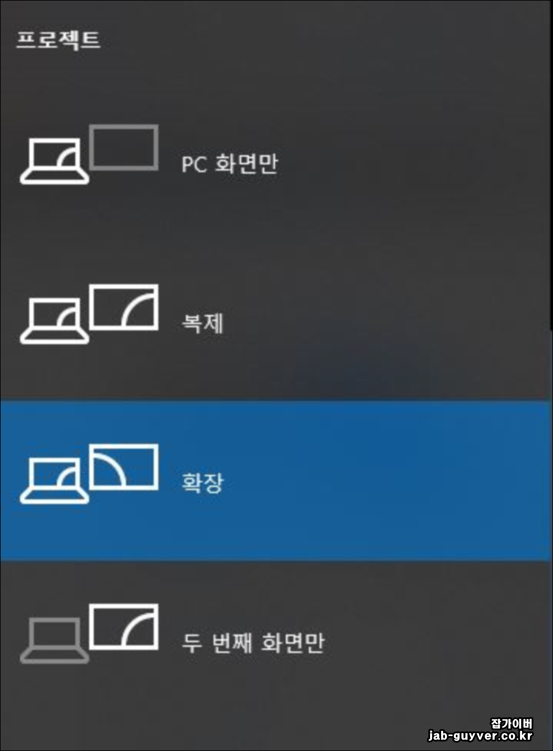 | 확장 | 두 화면을 하나처럼 사용 (작업 공간 증가) |