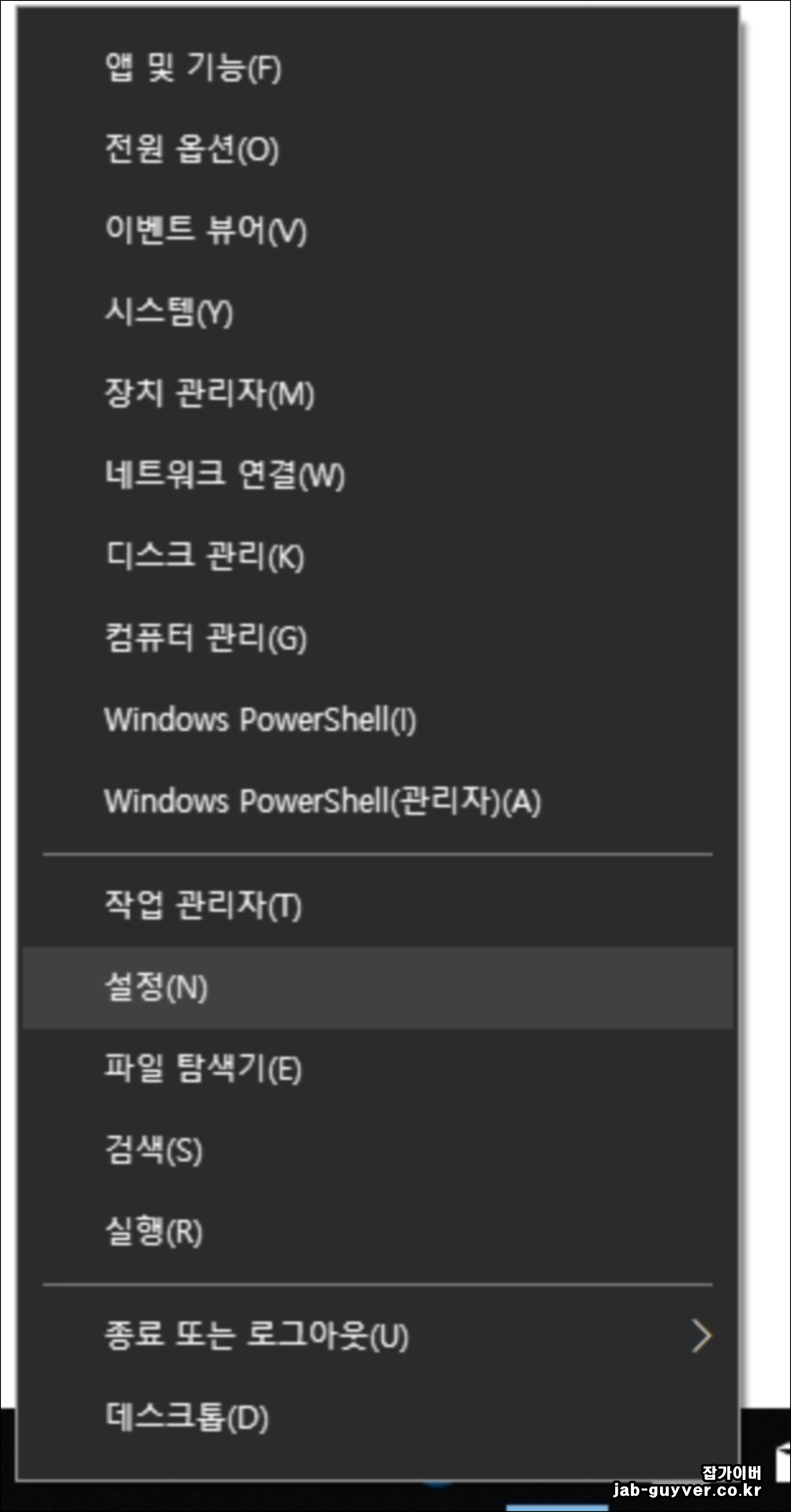 윈도우 + x키를 입력하면 왼쪽의 화면이 추가됩니다.