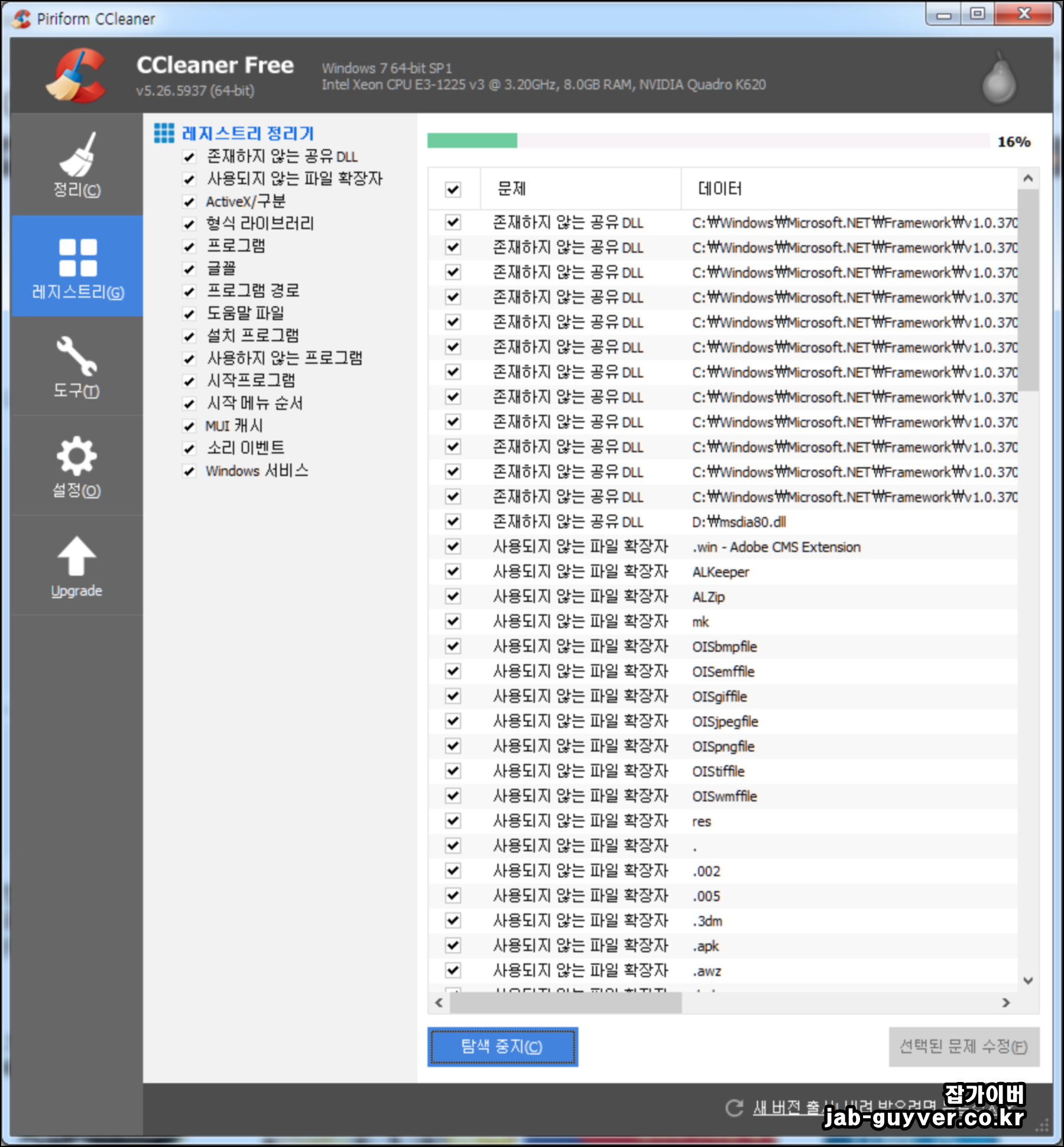 컴퓨터 레지스트리 최적화 프로그램 CCleaner로 윈도우 느려짐 정리하는 법