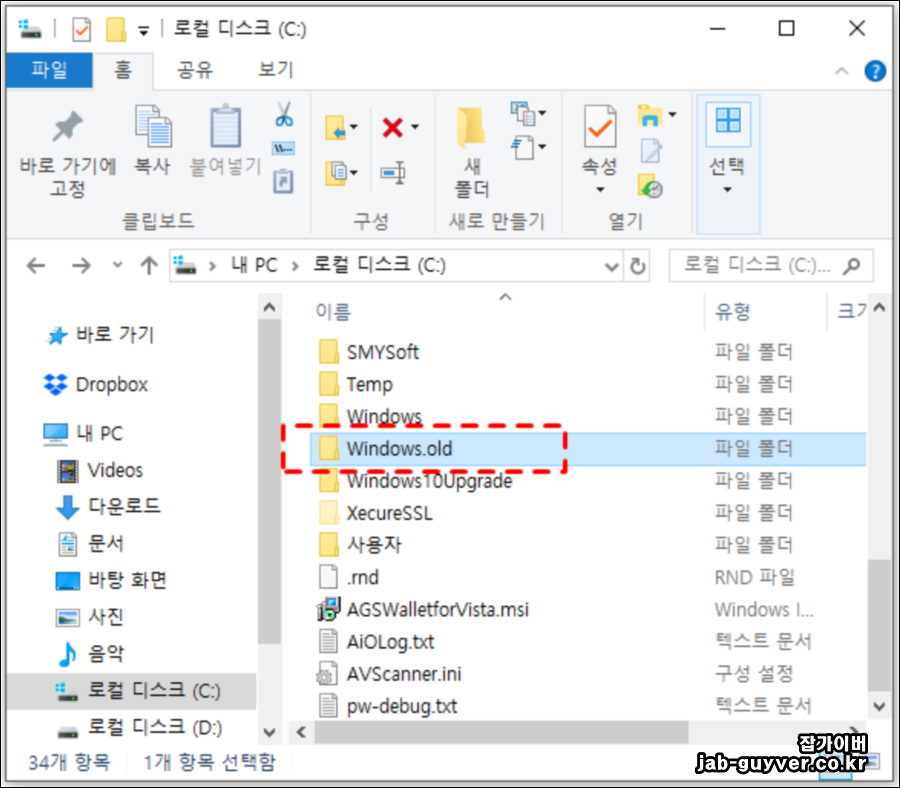 Windows.OLD 삭제 윈도우 백업파일 폴더제거