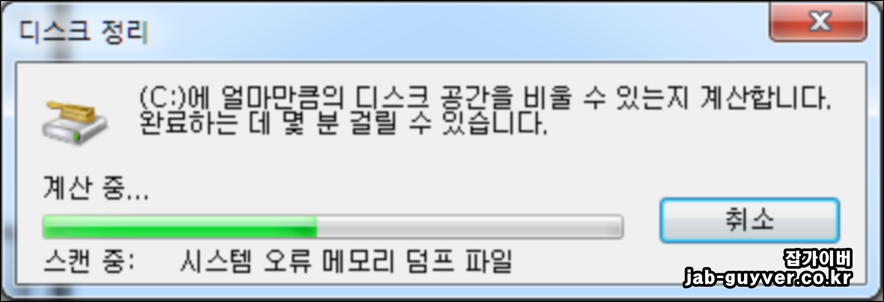 그럼 현재 윈도우 상태에 따라 디스크 정리 파일을 분석하는데 이는 컴퓨터 사양과 데이터양에 따라 천차만별의 시간이 걸린다