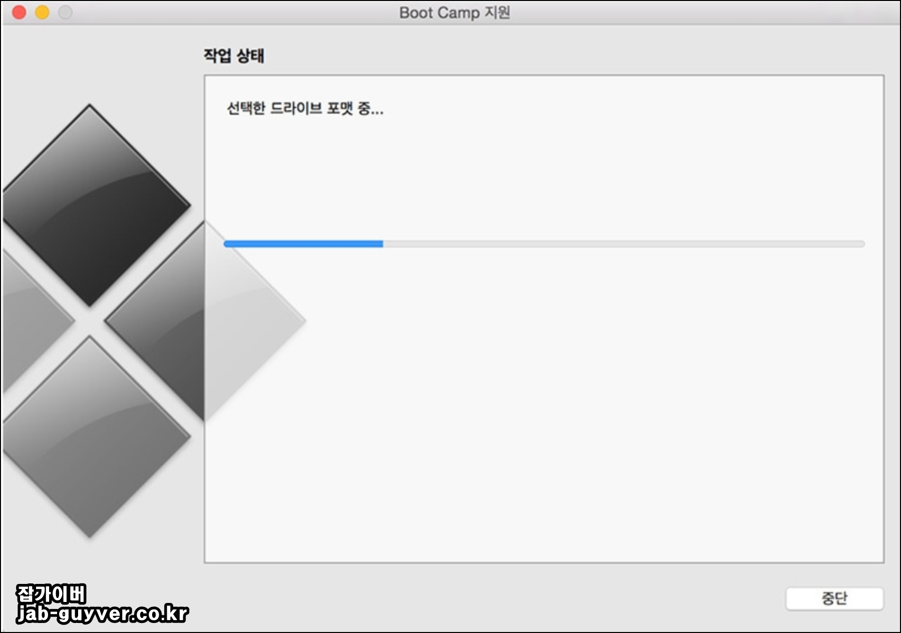 - 부트캠프는 보는 것과 같이 윈도우용 디스크 파티션을 생성한 다음 윈도우 설치 프로그램을 시작하여 인텔 기반의 Mac OS에 윈도우 설치를 도와주는 프로그램입니다.