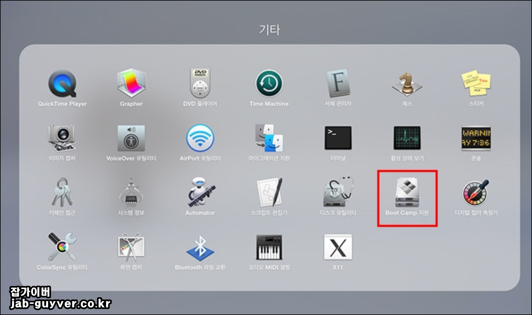- 런치패드 - 기타 폴더 안에 부트캠프 지원이라는 어플을 찾아서 실행합니다.
