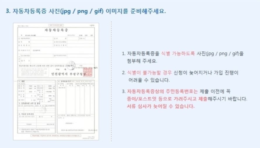 그리고 자신의 자동차등록증 사진을 이미지로 제출을 하면 됩니다.