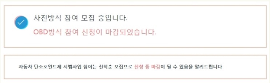 현재 OBD 방식의 참여 신청은 마감되었으며 사진 방식 참여 모집 중에 있으며 자동차 탄소포인트제 신청을 위해서는 아래의 증빙자료가 필요합니다.