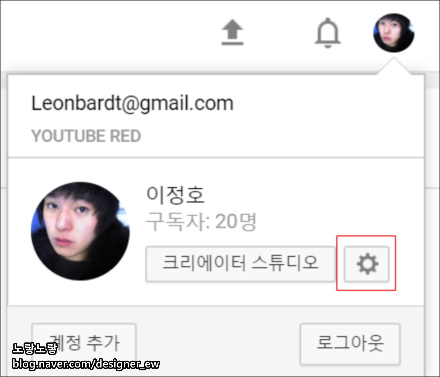 - 그리고 화면 오른쪽 상단에 로그인 창을 클릭하고 톱니 모양의설정창 마크를 클릭해줍니다.