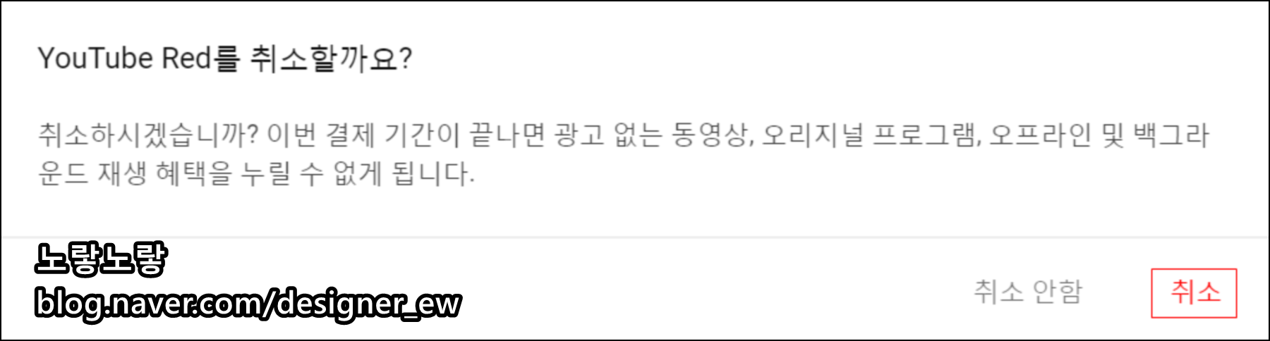 그럼 유튜브 레드를 취소할까요를 취소안함과 취소라는 헷갈리는 말이 뜹니다