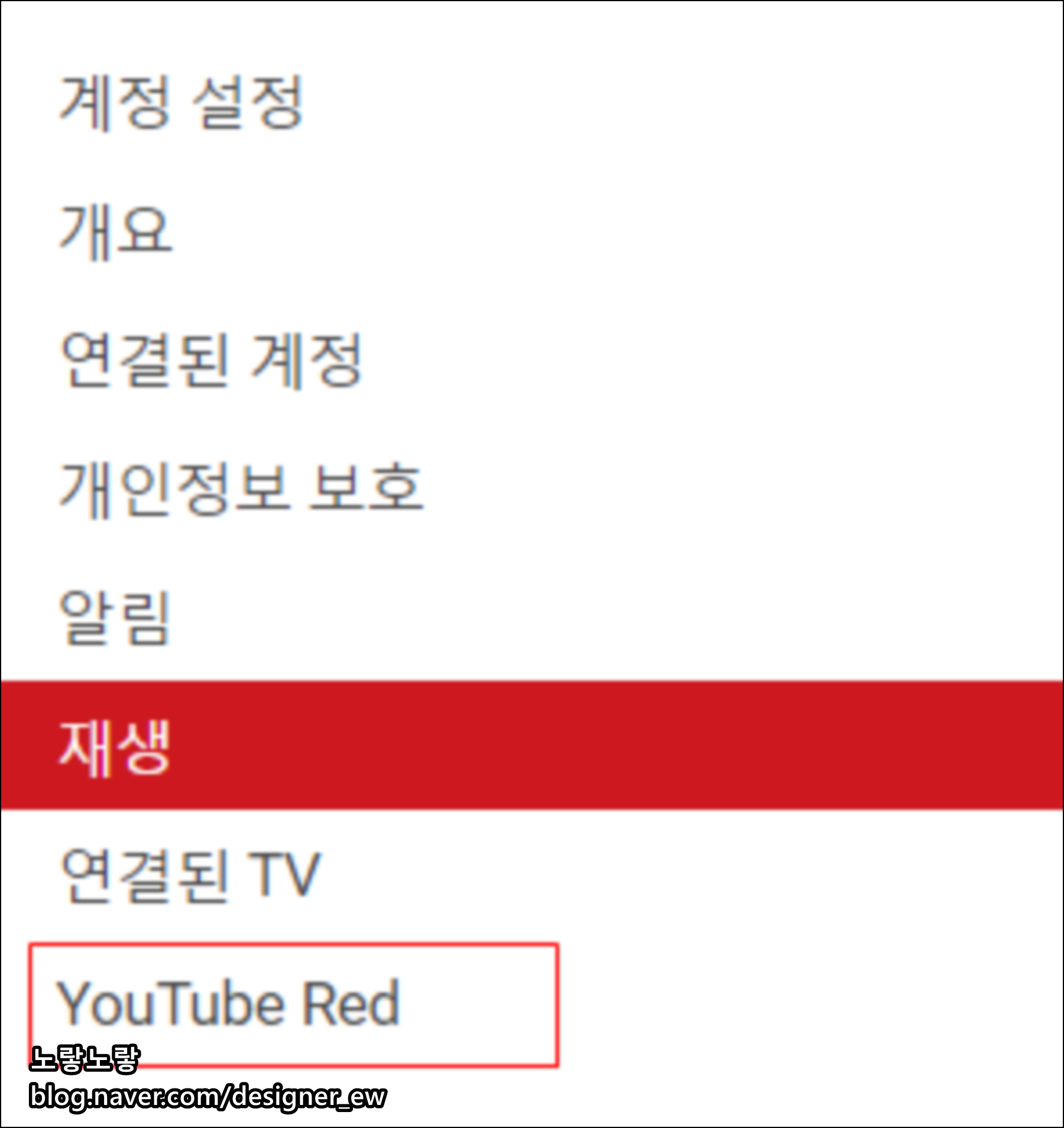 - 제일 하단에 YouTube Red가 보입니다