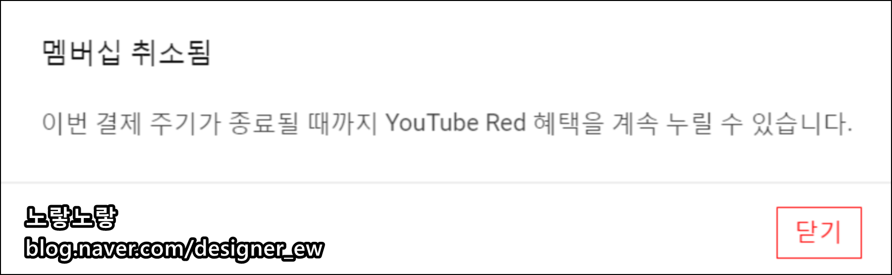 그럼 유튜브 프리미엄 "레드멤버십"이 취소됨이 뜹니다