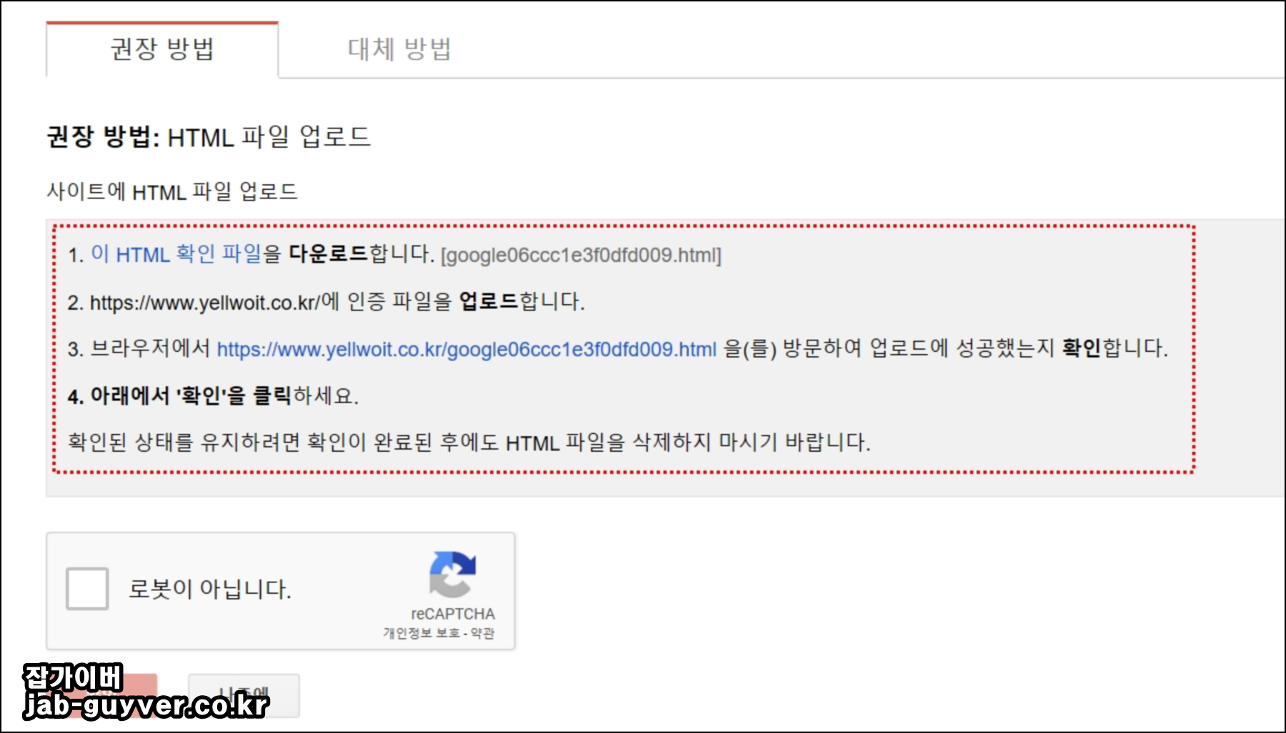 연결된 웹사이트에 연동을 하기 위해서는 해당사이트의 소유확인을 해야합니다.