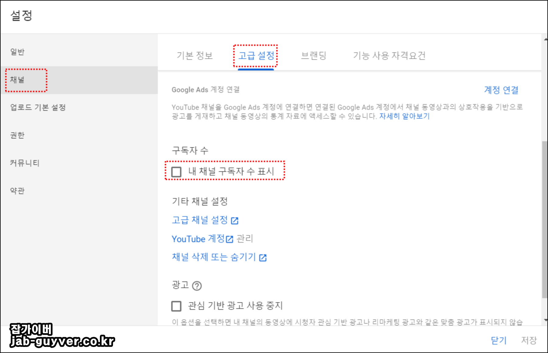 유튜브 구독자수 비공개 숨기기 안보이게 설정방법