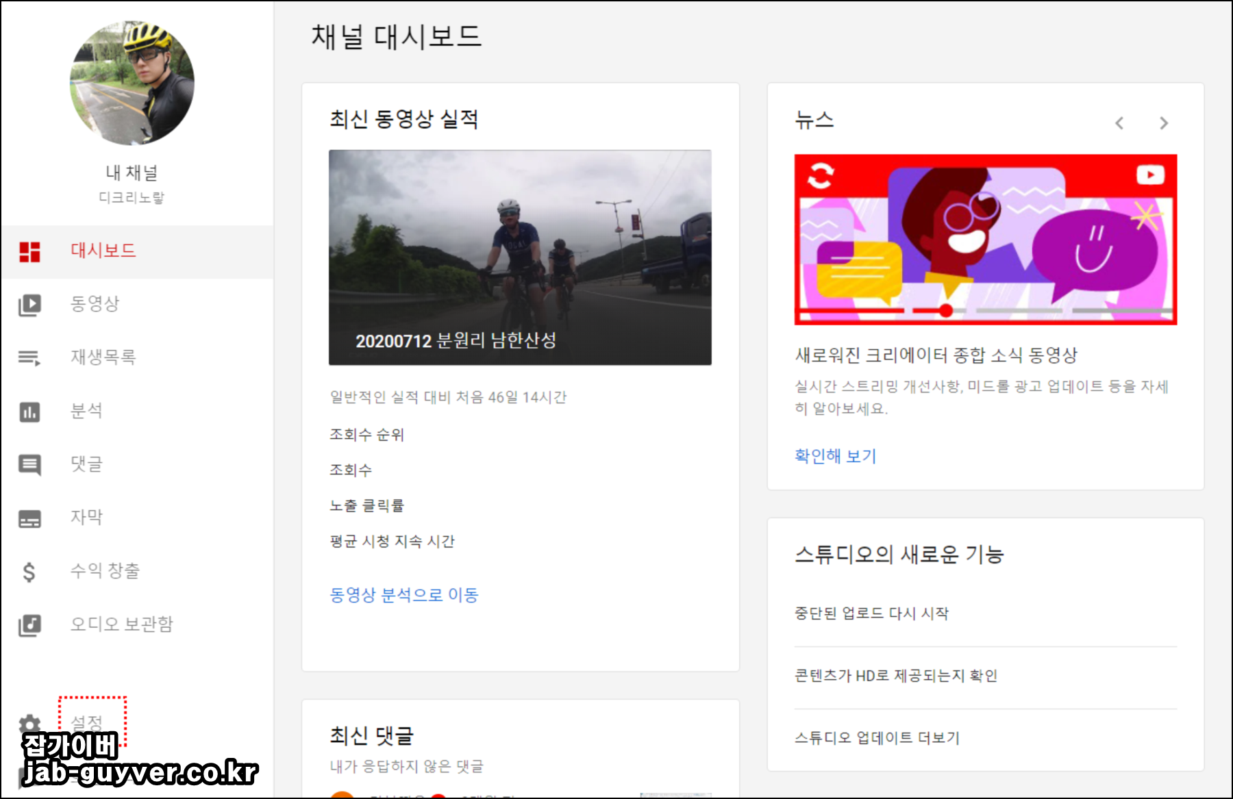 유튜브의 구독정보를 숨기기 위해서는 "Youtube 스튜디오"로 들어갑니다.