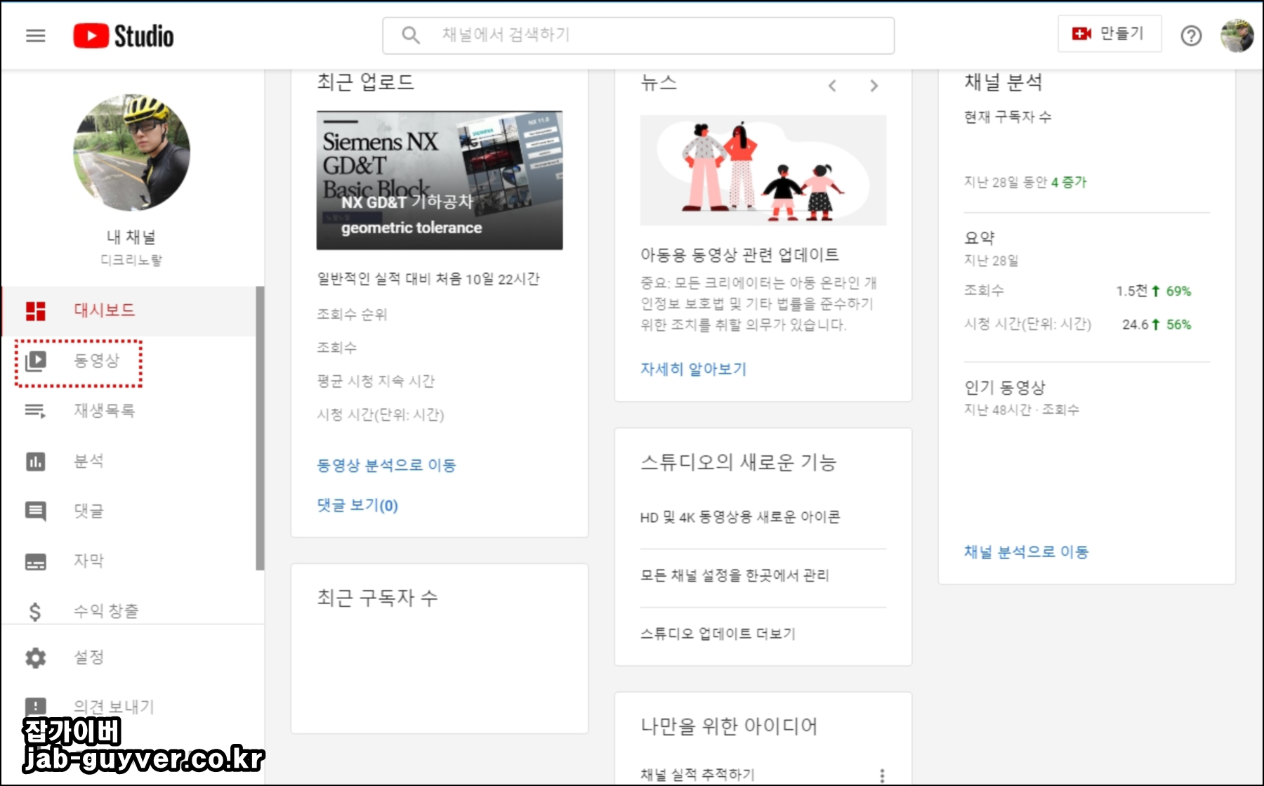 유튜브의 동영상을 관리하는곳이 어딘지 하나하나 알아보도록 하겠습니다.