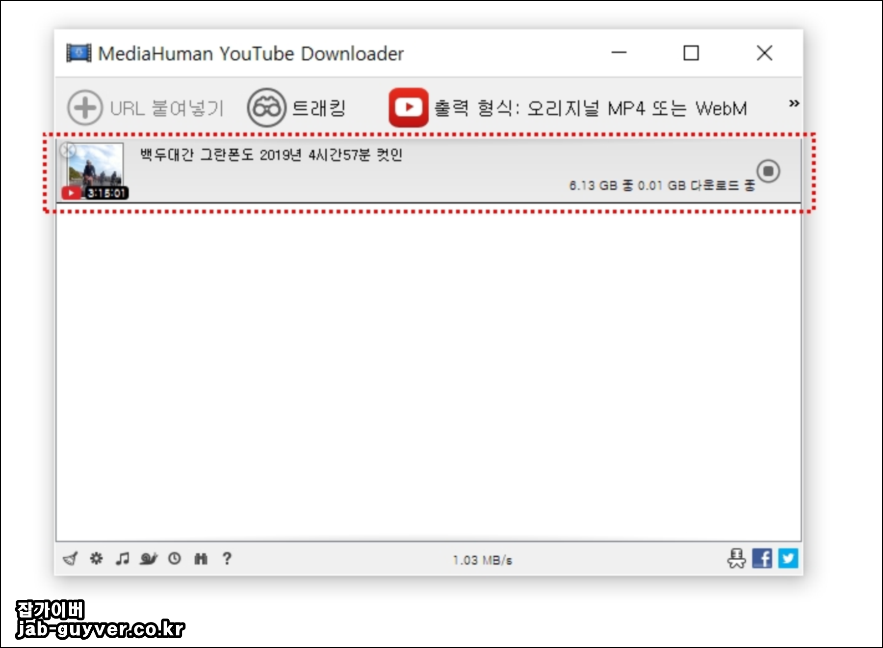 본 화면이 유튜브의 동영상이나 음악을 다운로드할 수 있는 프로그램의 모습입니다.