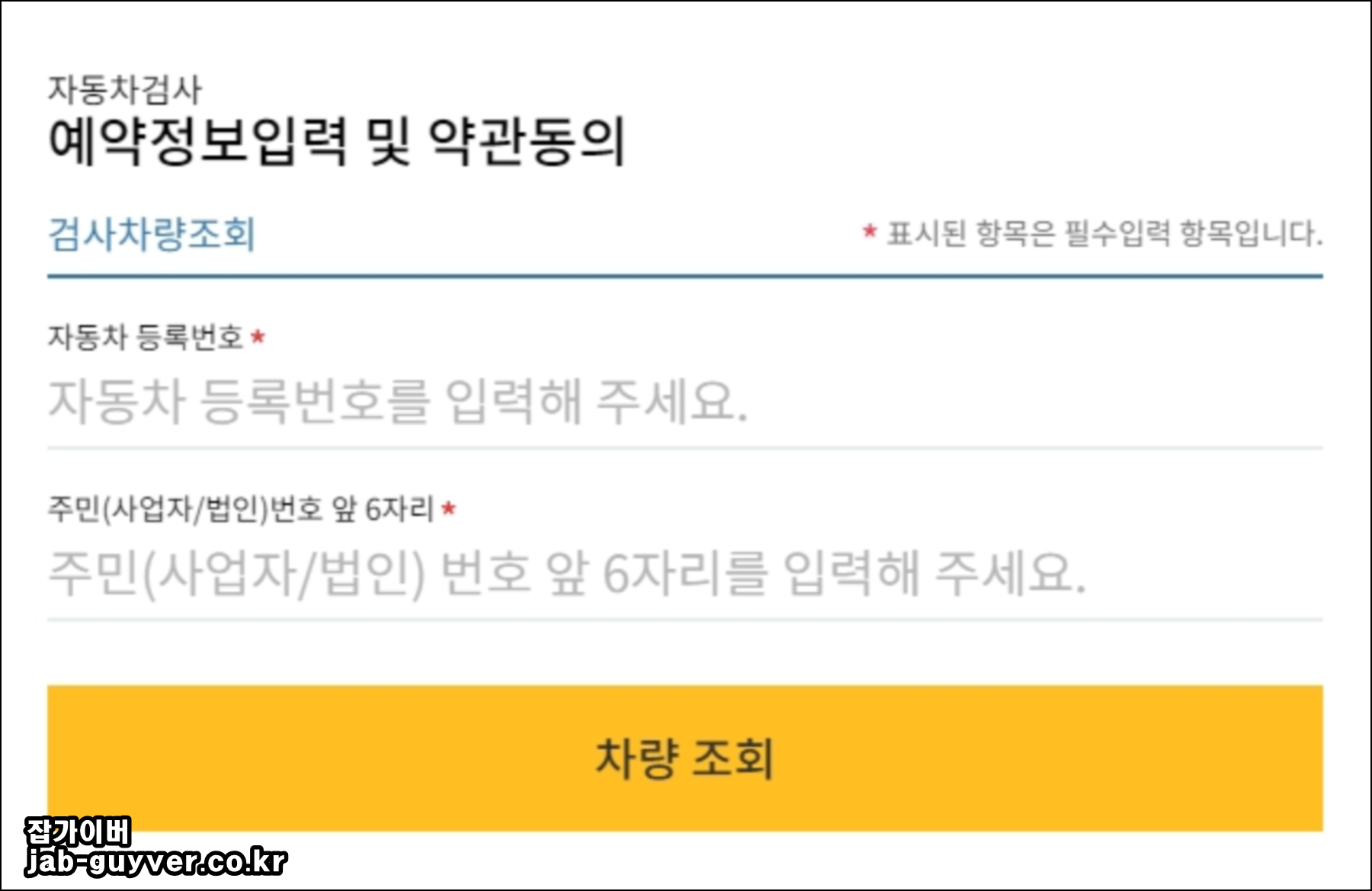 자동차 검사를 선택 -> 정기검사를 진행할 자동차 등록번호나 주민(사업) 등록번호를 입력합니다.