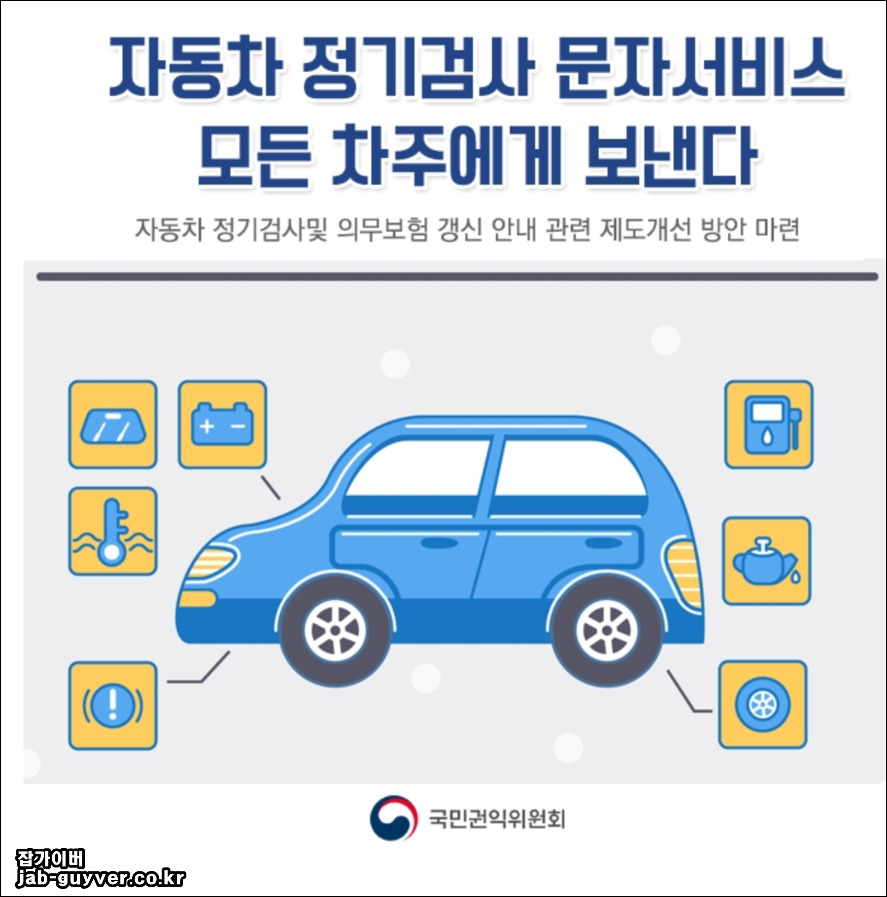 자동차 정기검사 예약 및 안내를 위한 문자서비스는 비사업용 승용차와 파견용 자동차를 대상으로 제공됩니다. 자동차 정기검사는 온라인 예약 시스템을 통해 쉽게 예약할 수 있습니다.