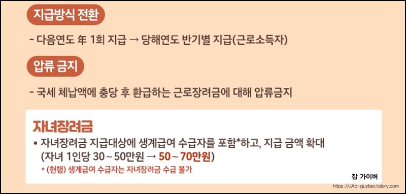 마지막으로 소득증대 체감도 제고를 위해 당해연도 지급방식으로 전환했습니다.