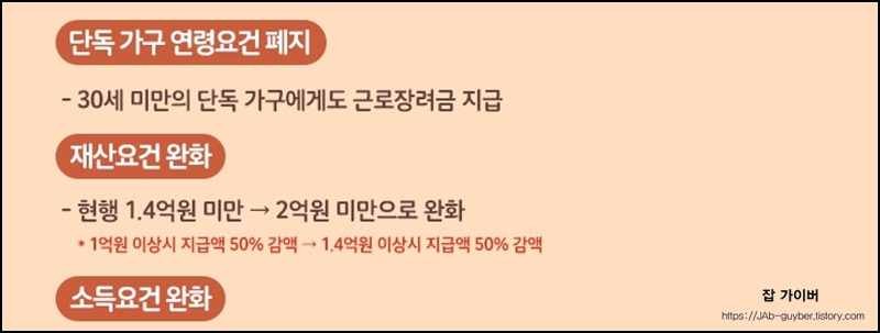 - 30세 미만의 단독 가구에게도 근로장려금 지급
