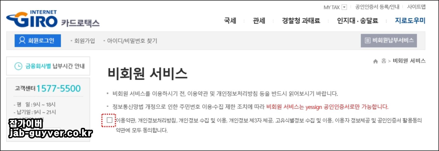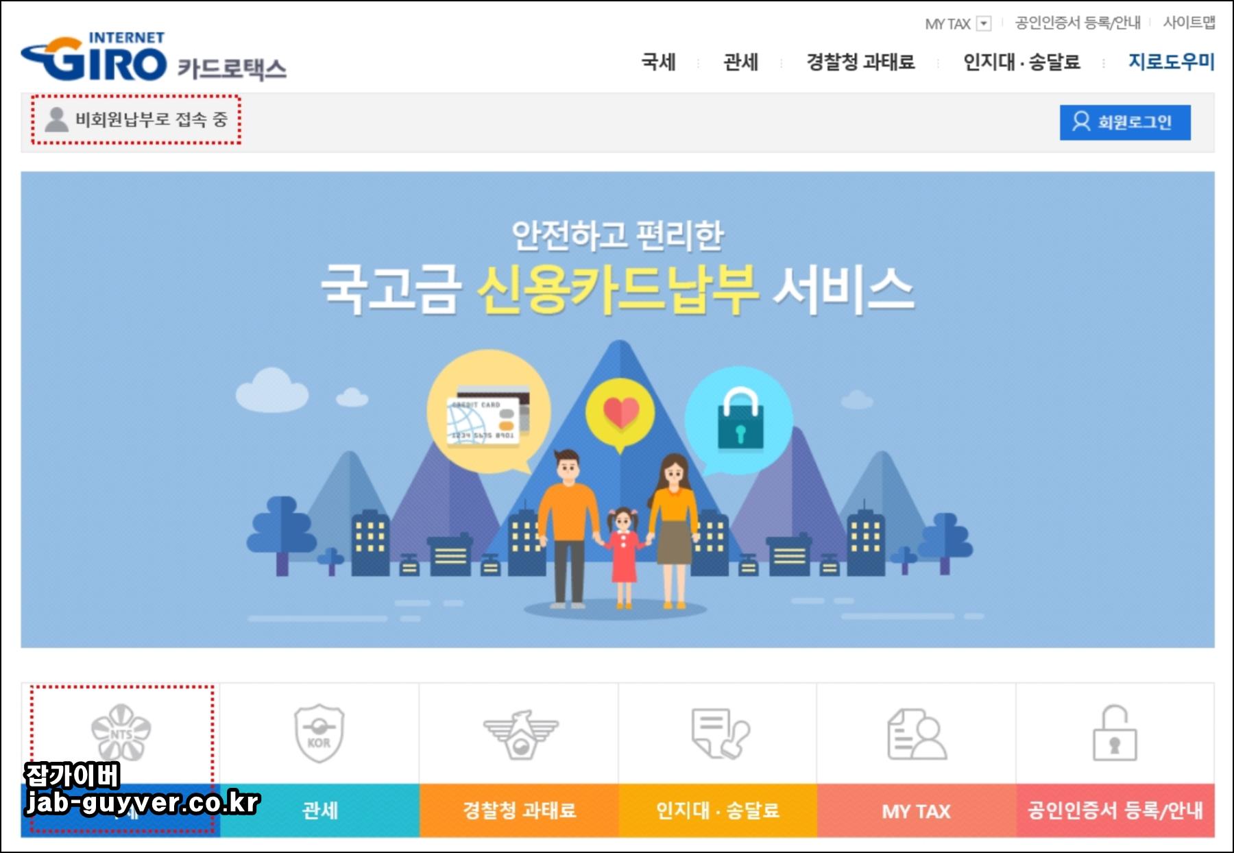카드로택스로 접속 후 회원으로 납부 방법과 비회원 납부 두 가지로 나뉩니다.