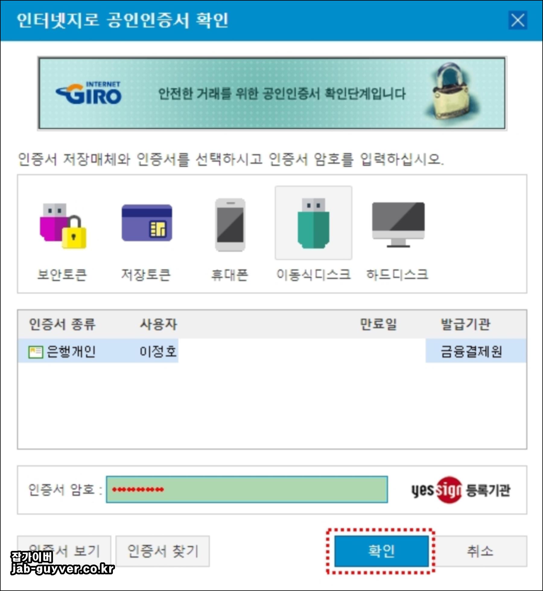 - 주민등록번호 or 전자납부번호 입력 후 본인인증조회 눌러준 다음 공인인증서를이용해 인증절차를 밟습니다.