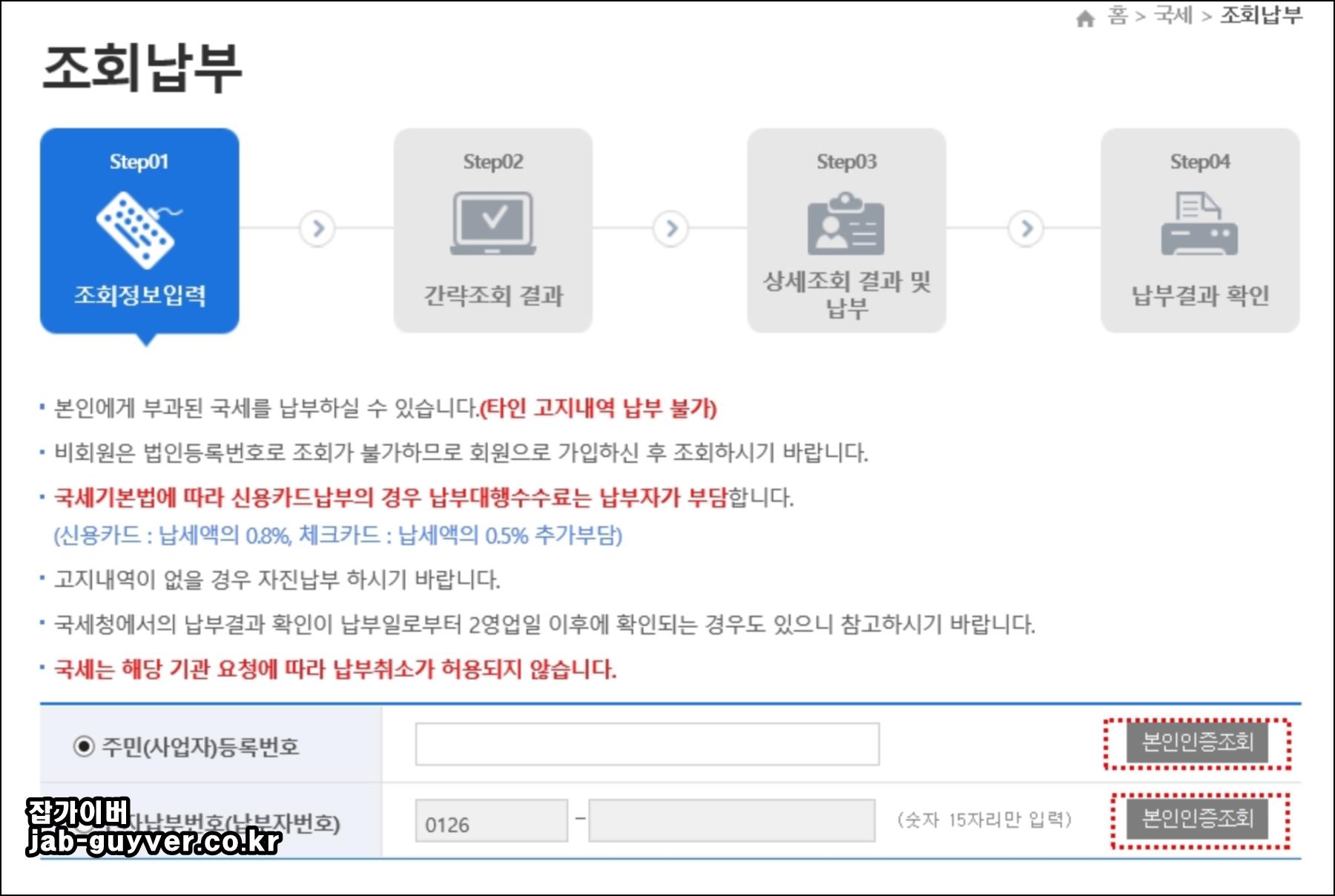 - 주민등록번호 또는 전자납부번호를 입력한 뒤 조회합니다.