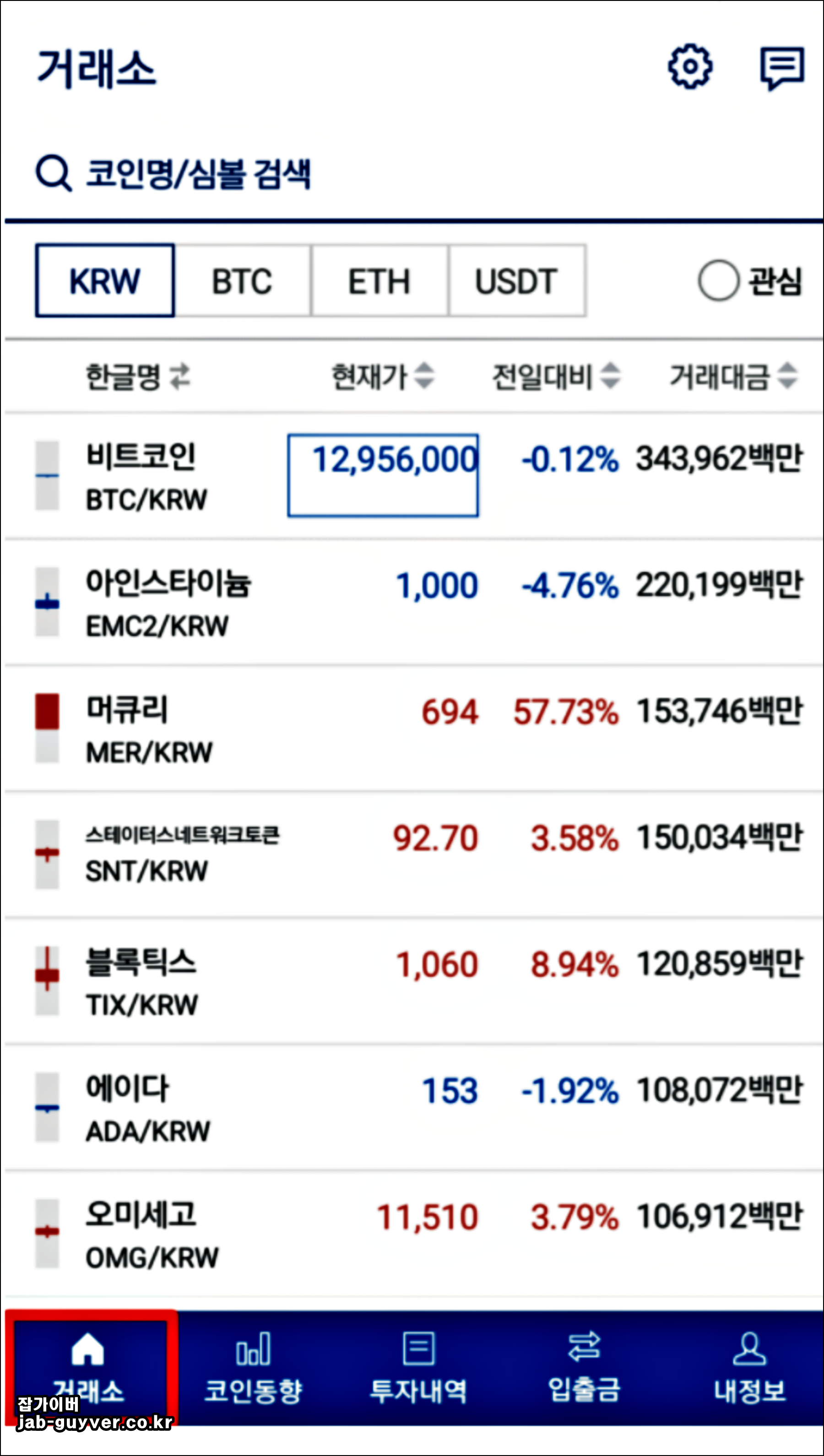 4. 거래소를 눌러준 다음 본인이 구매하고 싶은 코인을 선택해줍니다.