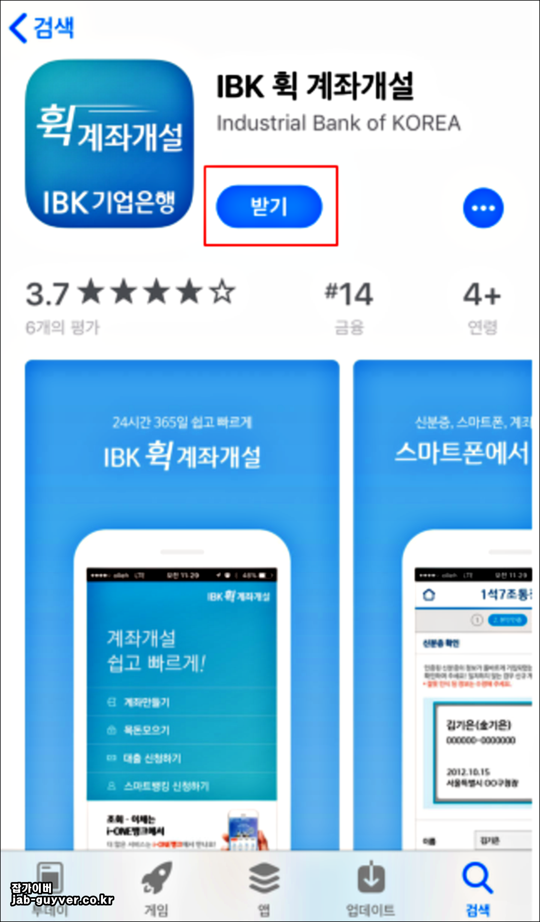 2. 아이폰 기준 어플명 "IBK 휙 계좌 개설"을 검색해서 다운로드합니다.