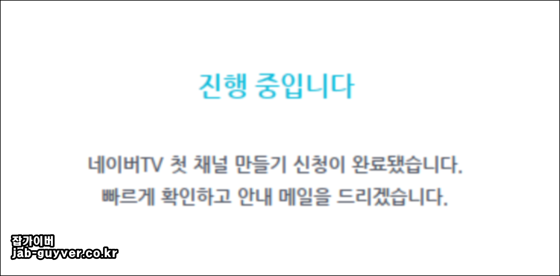 네이버TV 첫 채널 만들기 신청이 완료되었으며 이후 3일간의 채널 검토 후 최종 안내 메일을 받게 됩니다.