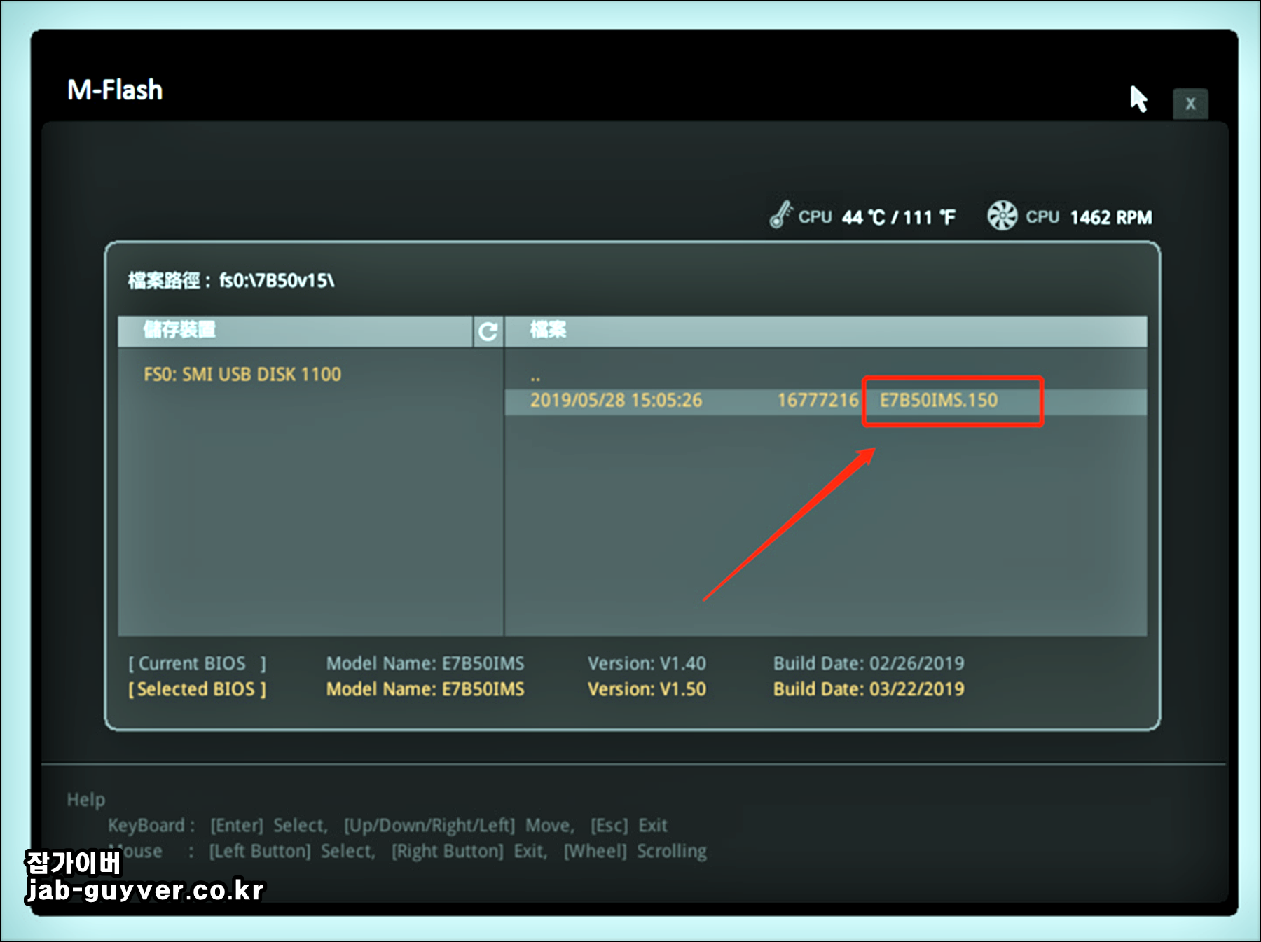 폴더 안에 있는 바이오스 파일을 선택하면 업데이트가 진행됩니다.